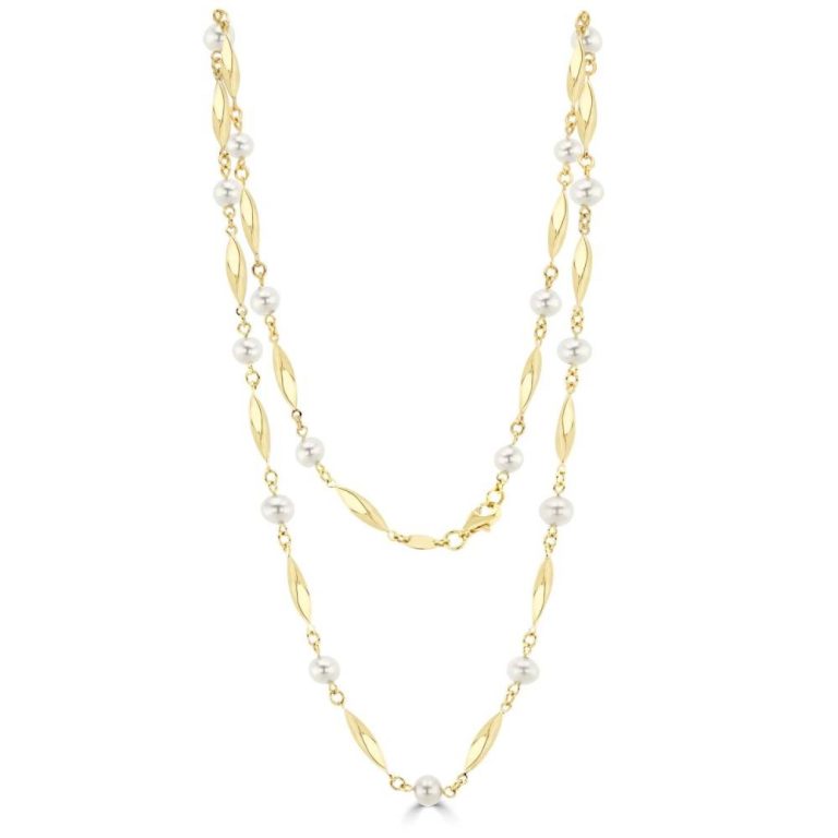 9ct Yellow Gold Freshwater Pearl & Bar Necklace