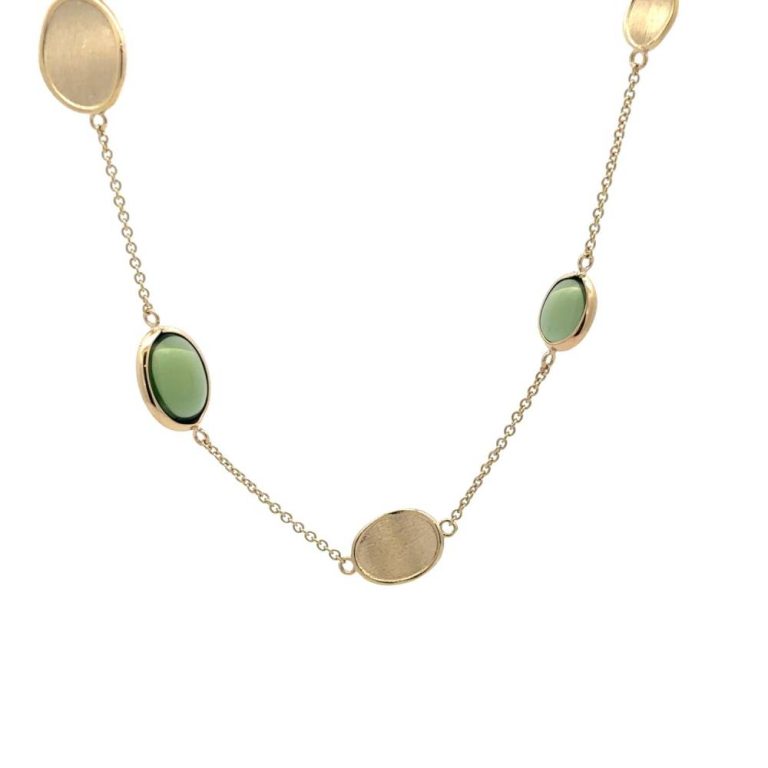 9ct Yellow Gold Disc and Green Tourmaline Necklace