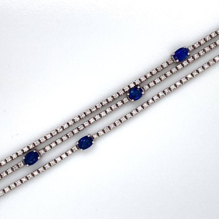 18ct White Gold Three Row Sapphire & Diamond Bracelet