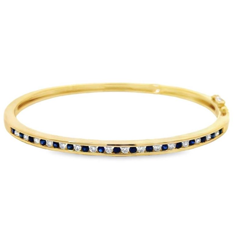 9ct Yellow Gold Sapphire & Diamond Bangle