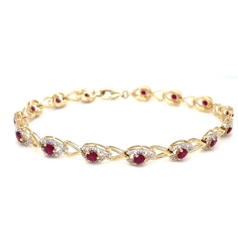 9ct Yellow Gold Pear Shaped Ruby & Diamond Bracelet