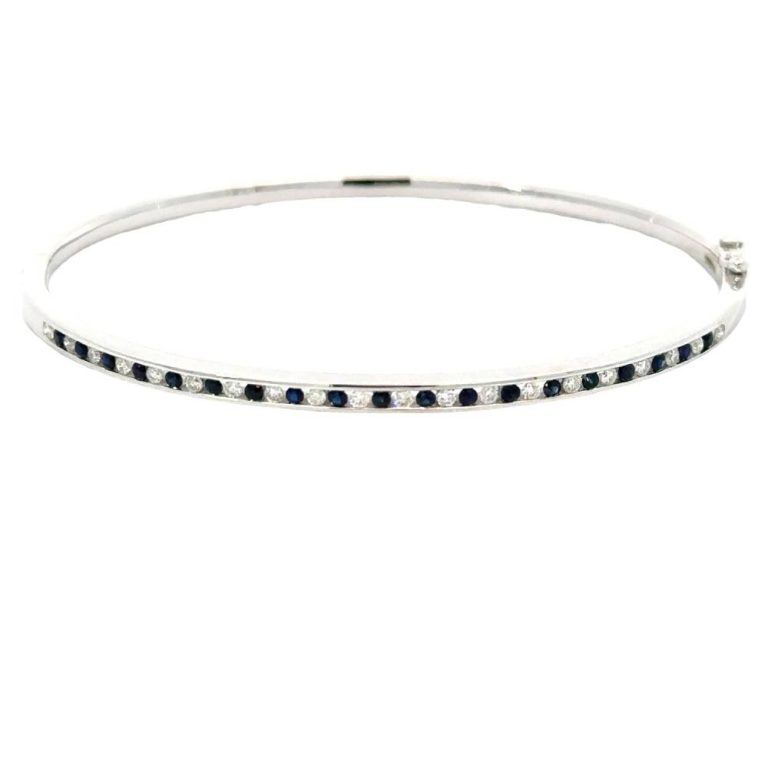 9ct White Gold Sapphire & Diamond Channel Set Bangle