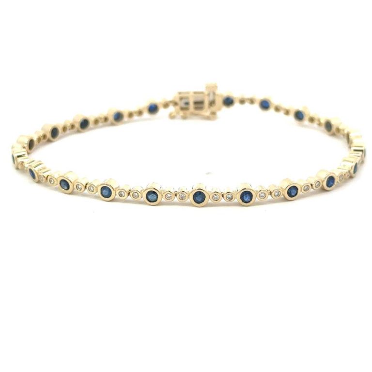9ct Yellow Gold Sapphire & Diamond Bracelet