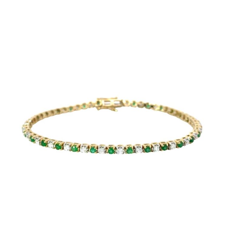 9ct Yellow Gold Emerald & Diamond Bracelet