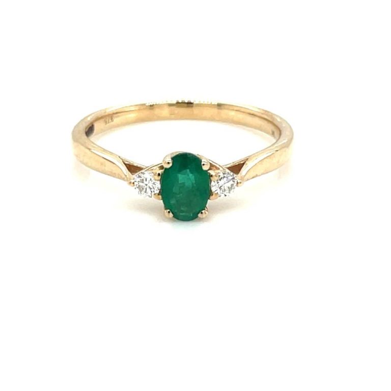 9ct Yellow Gold Three Stone Emerald & Diamond Ring