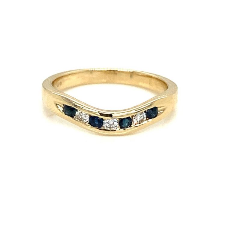 9ct Yellow Gold Sapphire & Diamond Wishbone Ring