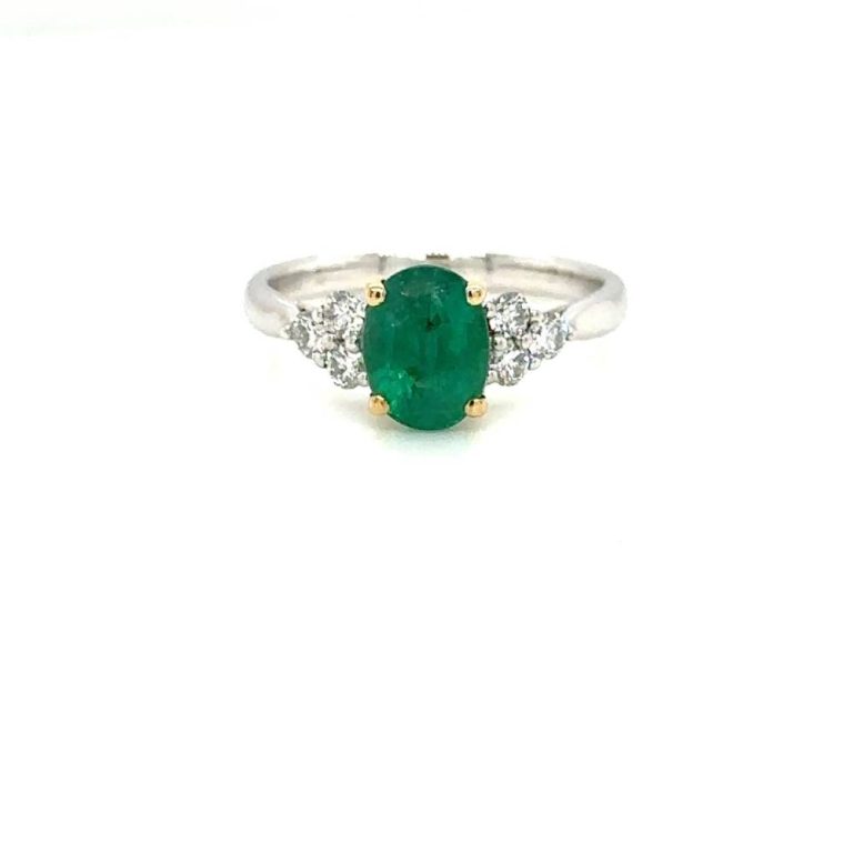 Platinum & 18ct Gold Oval Emerald & Diamond Ring