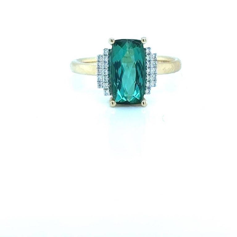 18ct Yellow Gold Green Tourmaline & Diamond Ring