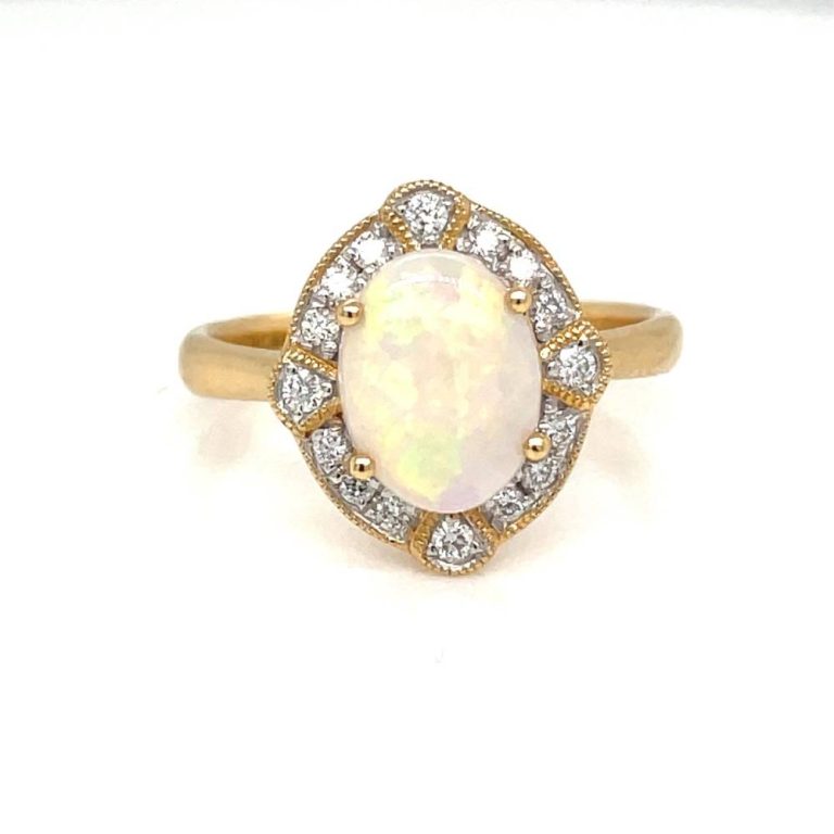 18ct Yellow Gold Oval Opal & Diamond Cluster Ring