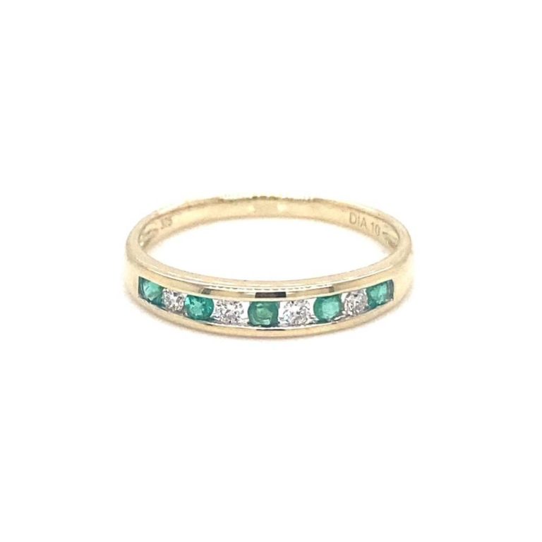 9ct Yellow Gold Emerald & Diamond Grain Set Ring
