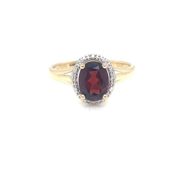9ct Yellow Gold Garnet & Diamond Cluster Ring