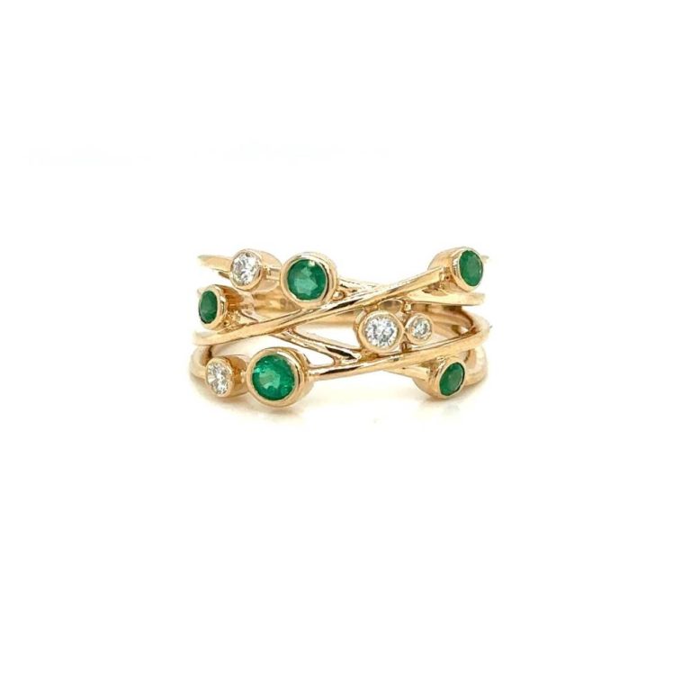 9ct Yellow Gold Emerald & Diamond Torque Ring