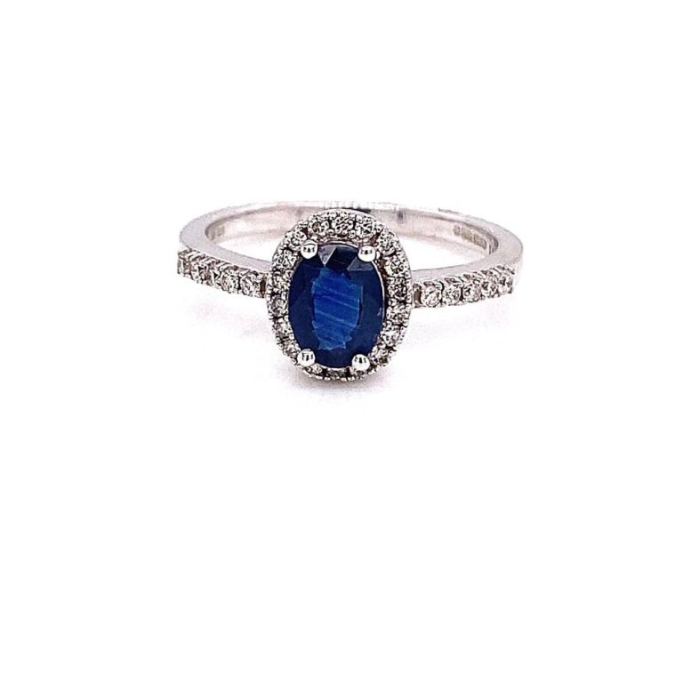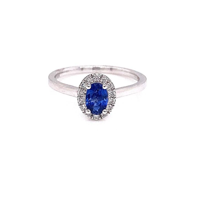 9ct White Gold Oval Sapphire & Diamond Cluster Ring