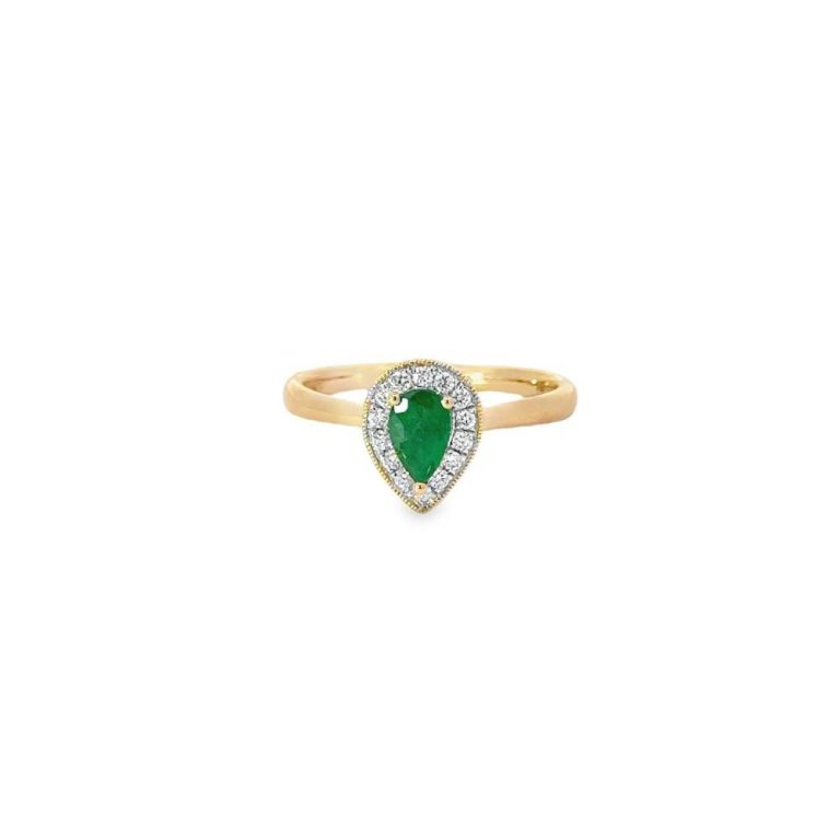 9ct Yellow Gold Emerald & Diamond Pear Shaped Ring