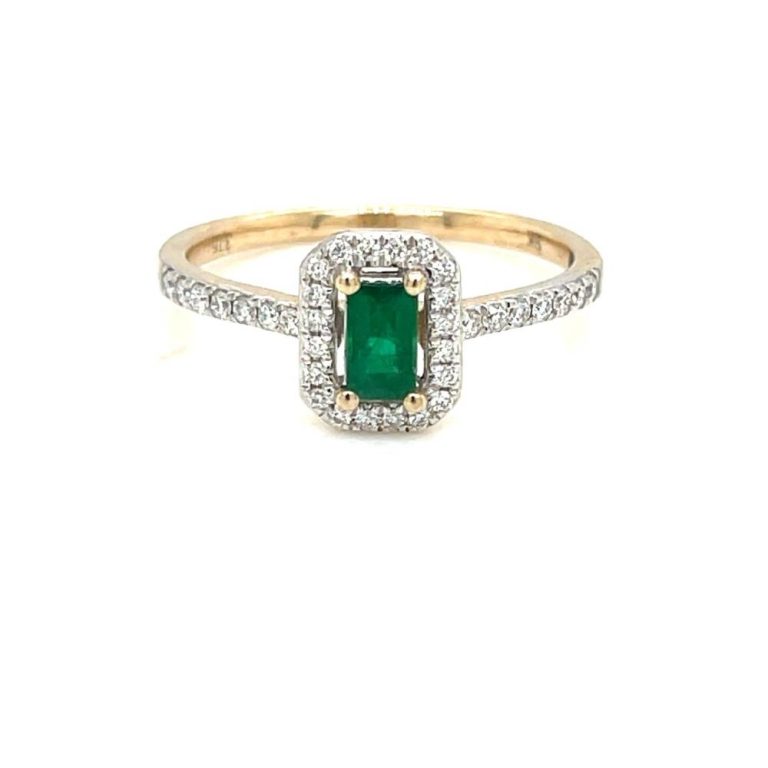 9ct Yellow Gold Emerald & Diamond Rectangular Cluster Ring