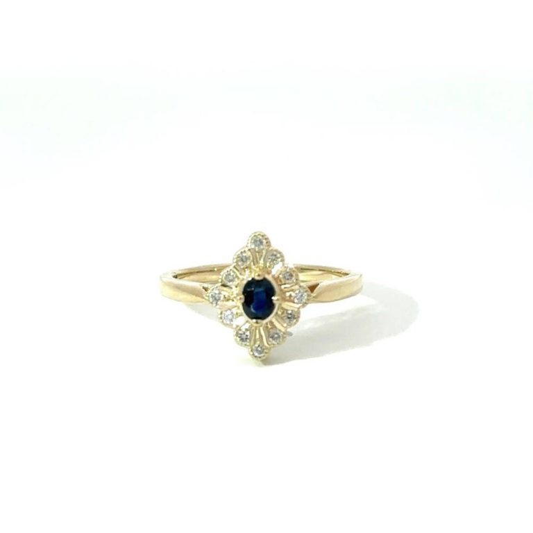9ct Yellow Gold Marquise Shape Sapphire & Diamond Ring