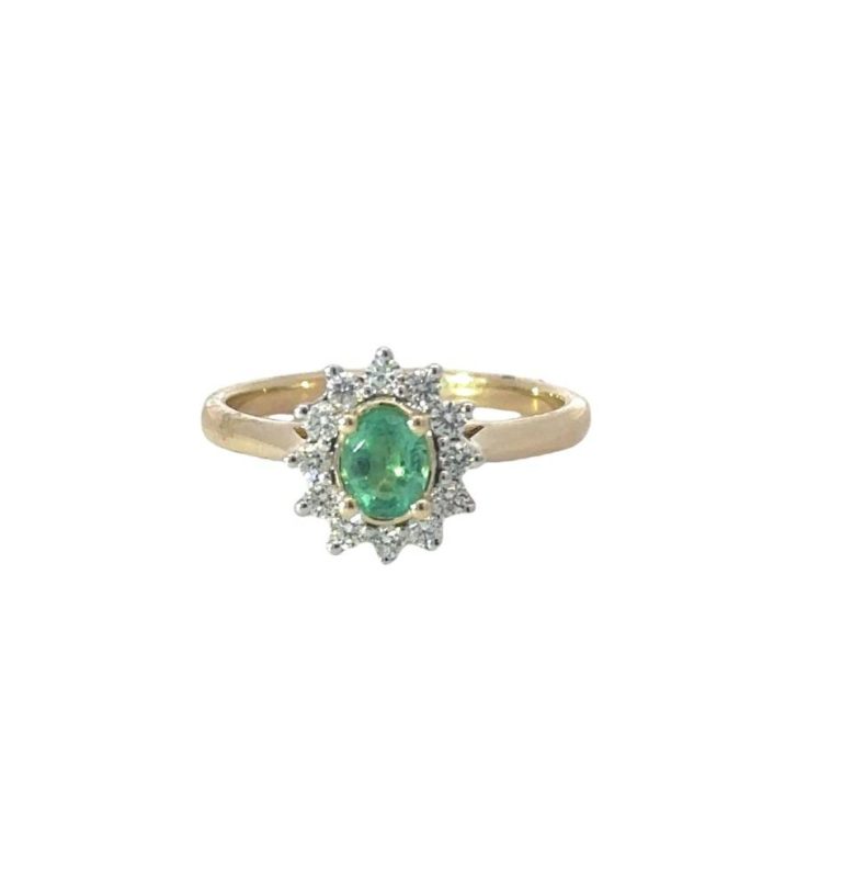 9ct Yellow Gold Emerald & Diamond Cluster Ring