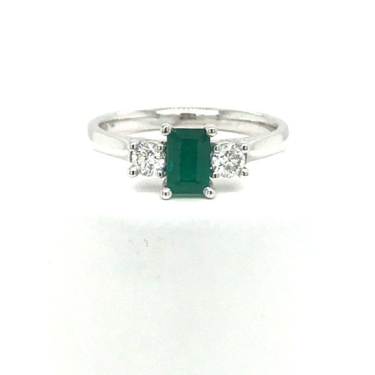 18ct White Gold Three Stone Emerald & Diamond Ring
