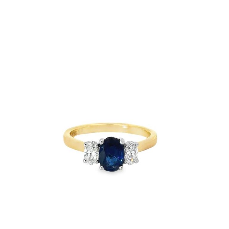 18ct Yellow Gold & Platinum Oval Sapphire & Diamond Ring