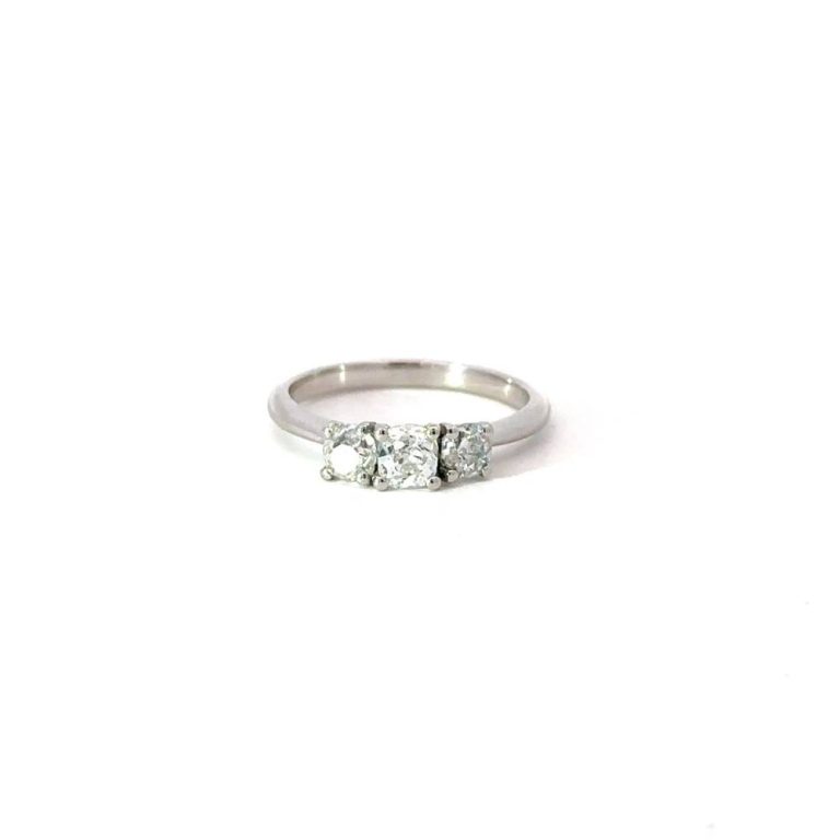 Pre Owned Platinum Three Stone Old Cut Diamond Ring