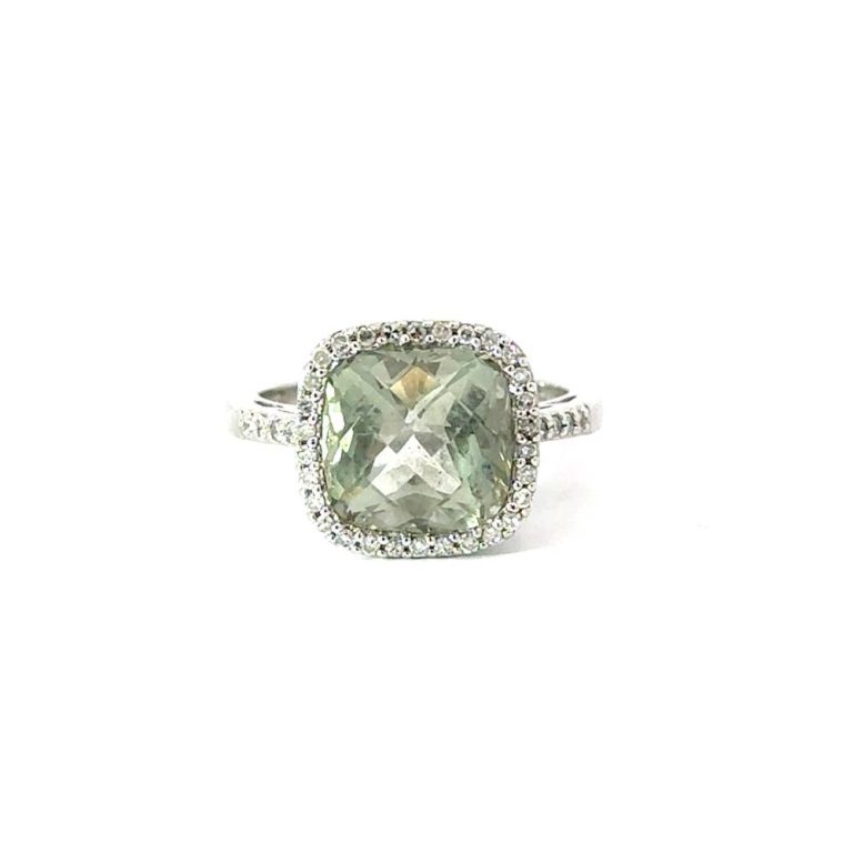Pre Owned 9ct White Gold Green Amethyst & Diamond Ring