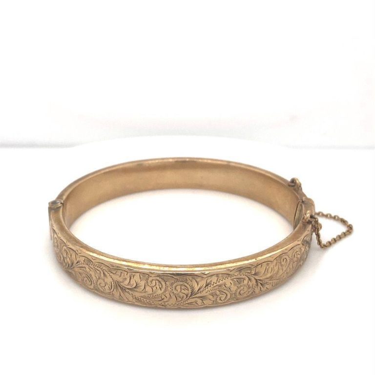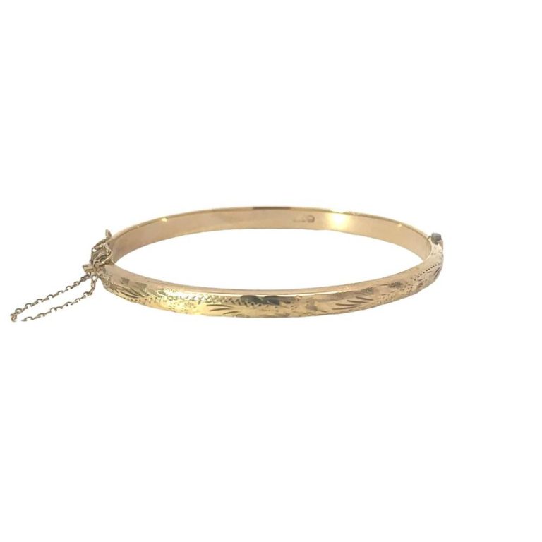 Preowned 9ct Yellow Gold Half Engraved Bangle
