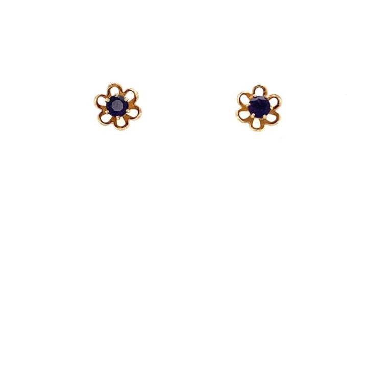 Pre Owned 9ct Yellow Gold Amethyst Flower Stud Earrings