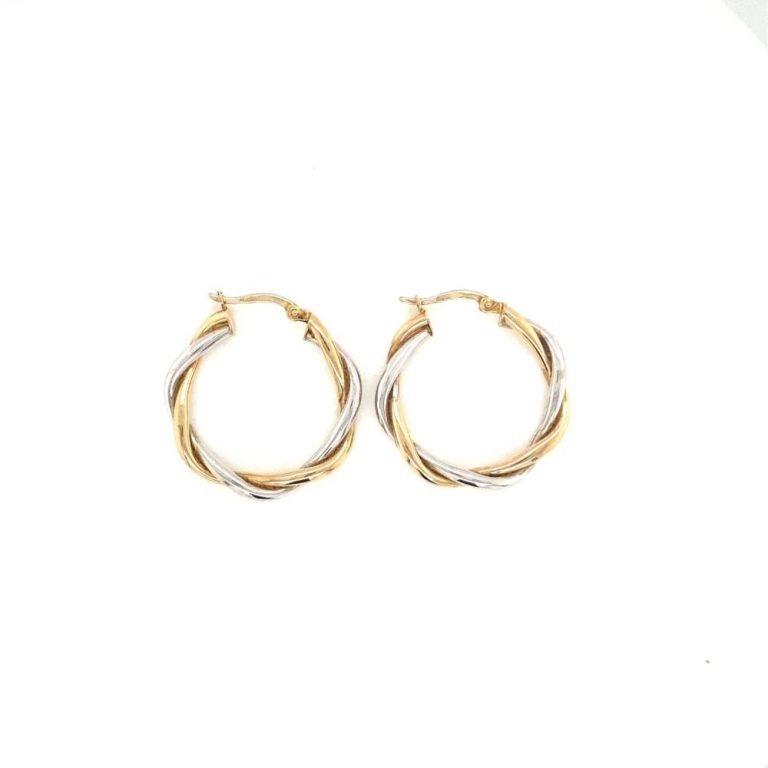 Pre Owned 9ct Yellow & White Gold Crossover Hoop Earrings