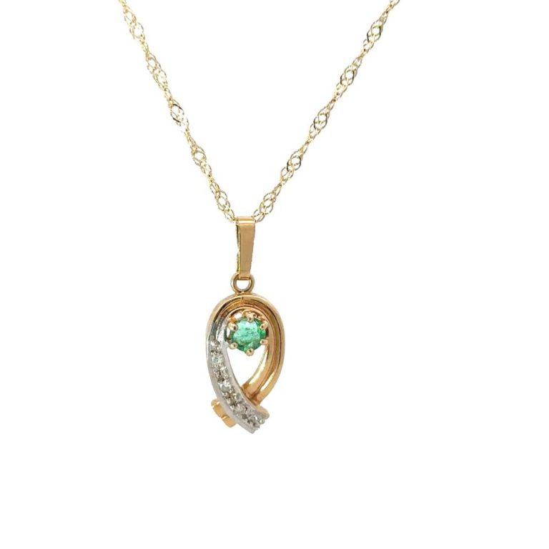 Pre Owned 9ct Yellow Gold Open Emerald & Diamond Pendant