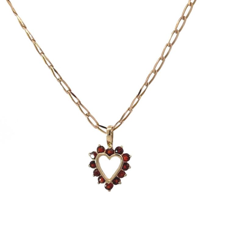 Pre Owned 9ct Yellow Gold Garnet Heart Pendant