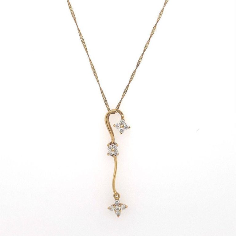 Pre Owned 9ct Yellow Gold Three Stone Diamond Wavy Pendant