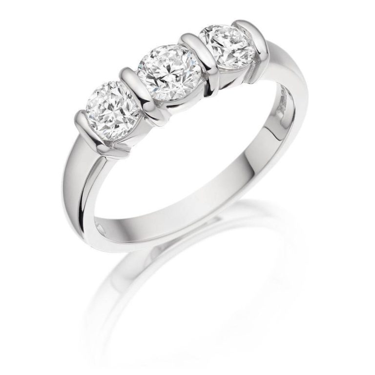 Platinum Three Stone Round Brilliant Cut Diamond Bar Set Ring