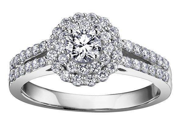 Platinum Two Row Diamond Halo Ring with Split Shoulders