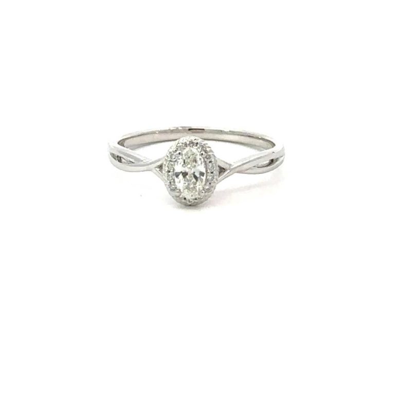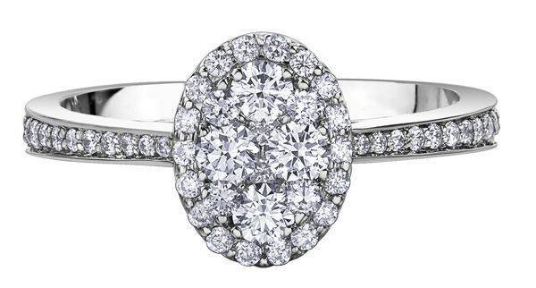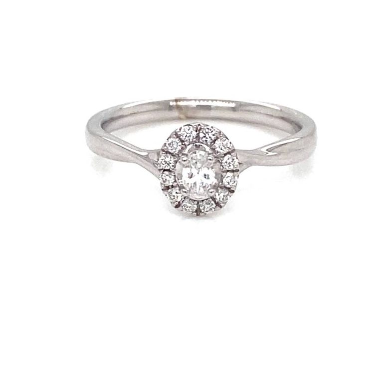 9ct White Gold Oval Diamond Halo Cluster Ring
