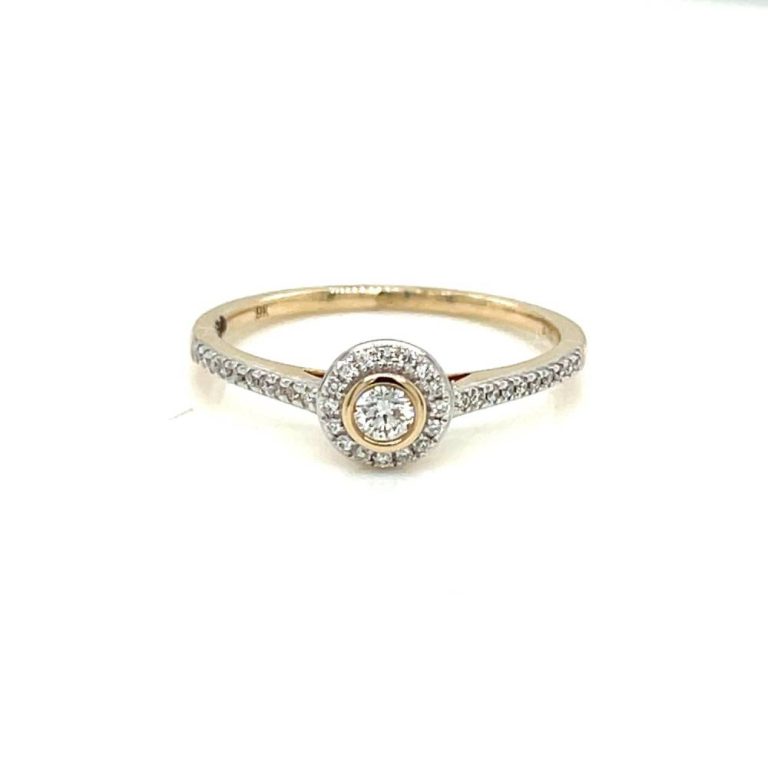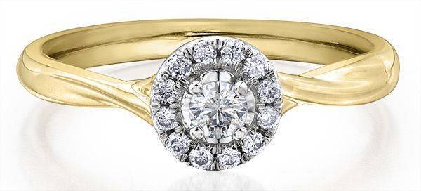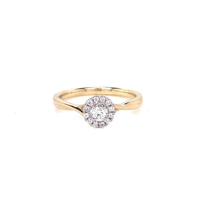 9ct Yellow Gold Round Brilliant Cut Diamond Halo Ring