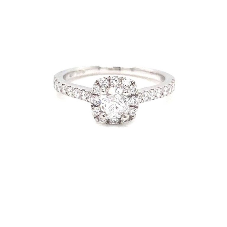 Platinum Cushion Diamond Halo Ring