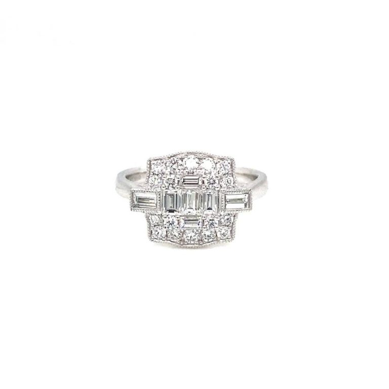 Platinum Art Deco Style Diamond Cluster Ring