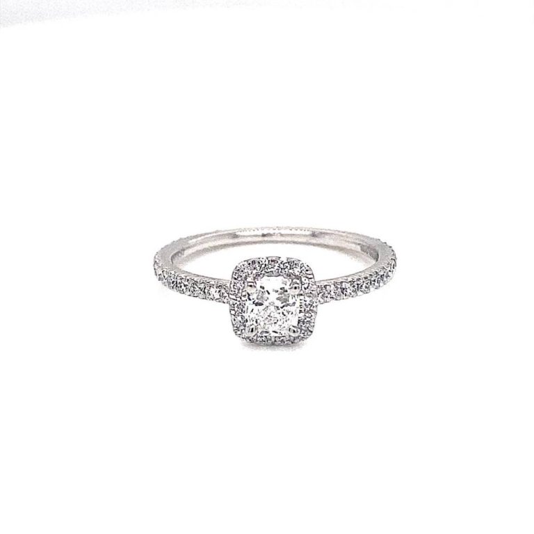 Platinum Cushion Shaped Diamond Halo Ring 0.63ct