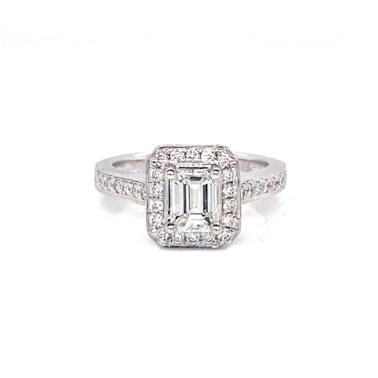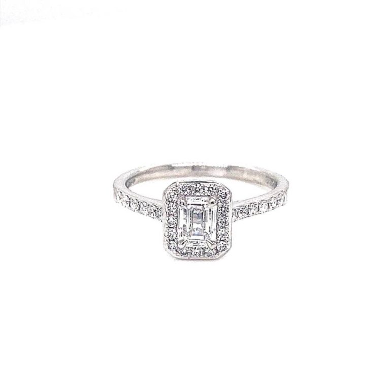 Platinum Emerald Cut Diamond Halo Ring 0.70ct.