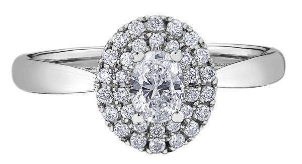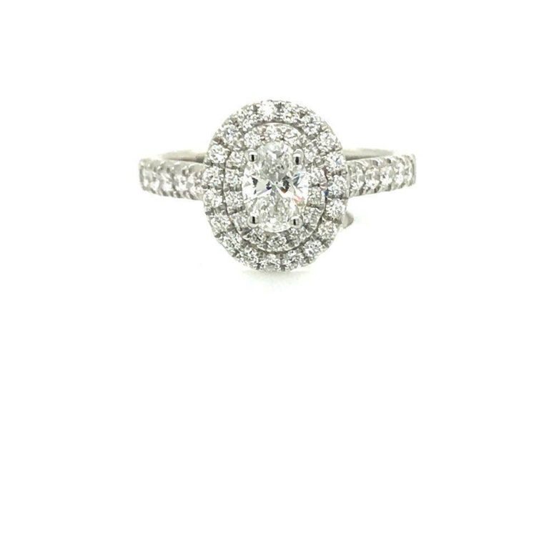Platinum Oval Diamond Two Row Halo Ring