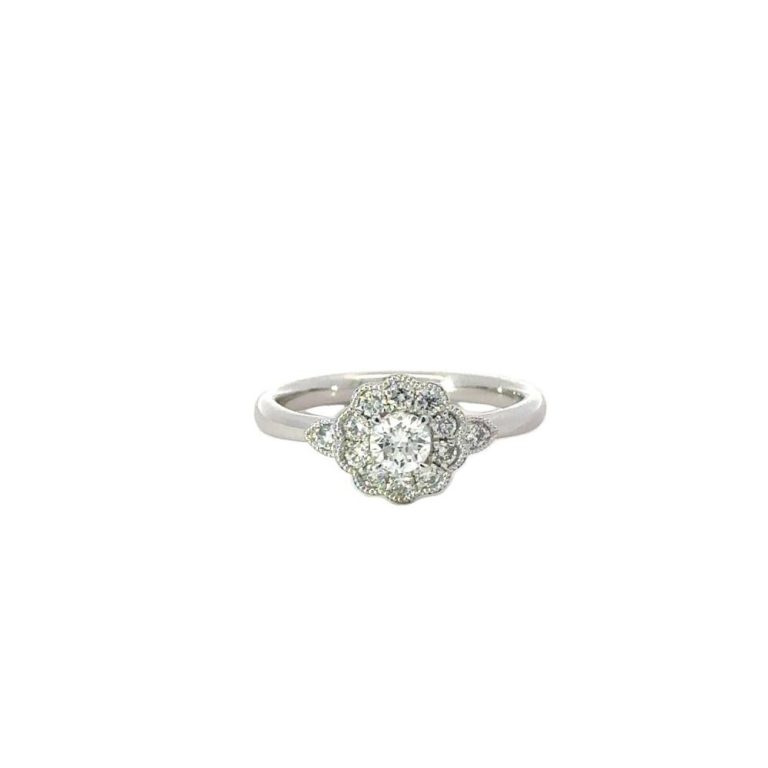 Platinum Millegrain Diamond Cluster Ring