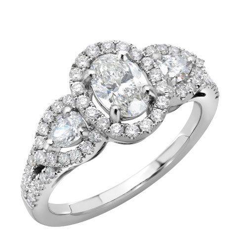 Platinum Three Oval Halo Cluster Ring