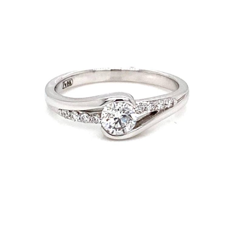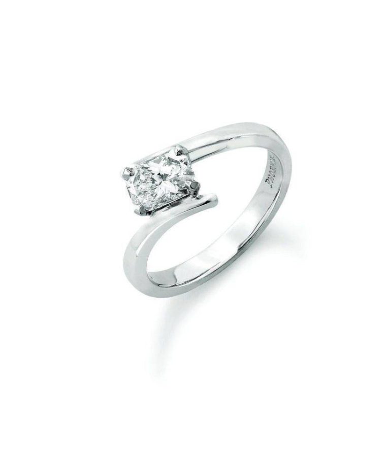 18ct White Gold Single Stone Diamond Cross Over Ring