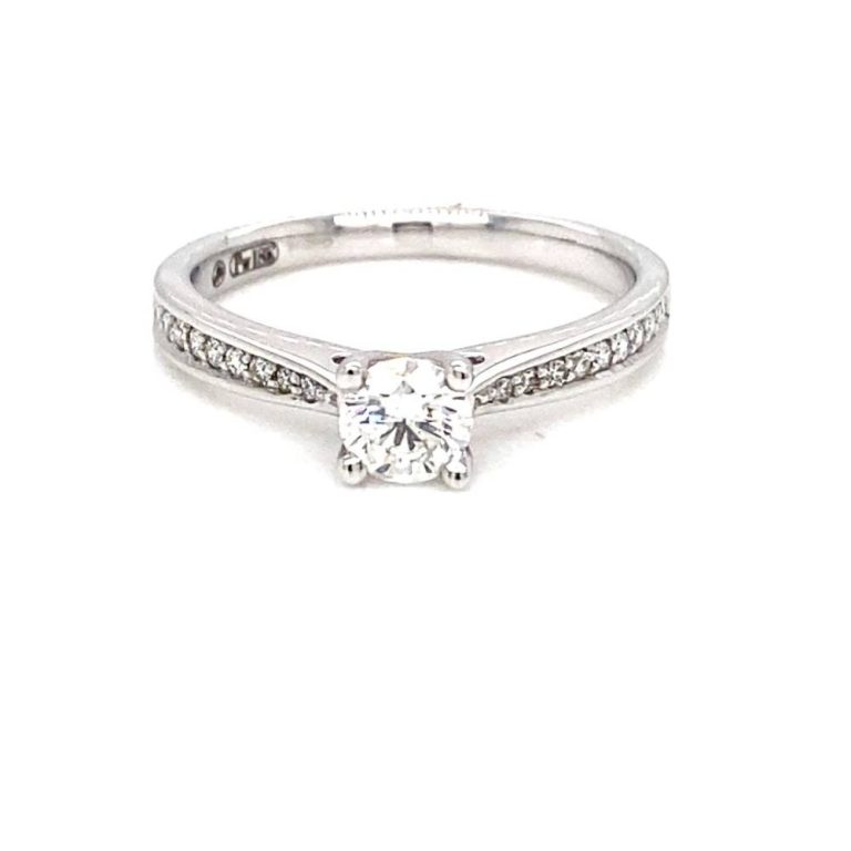 18ct White Gold Single Stone Diamond Ring with Diamond Set Shoulders