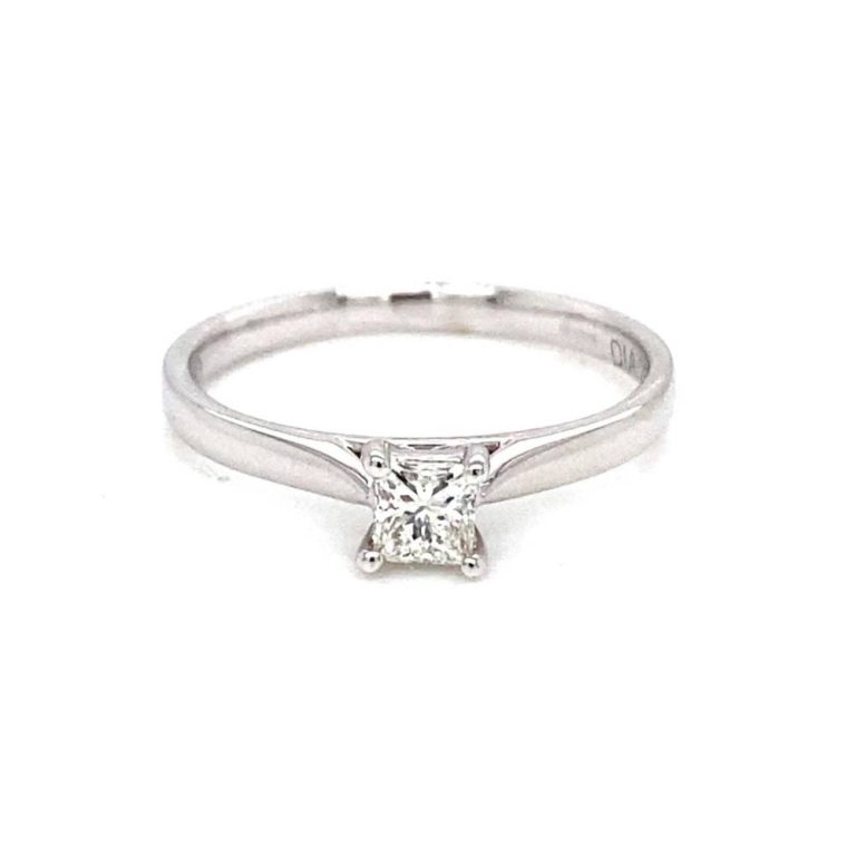 18ct White Gold Solitaire Princess Cut Diamond Ring 0.25ct