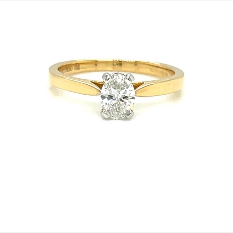 18ct Yellow Gold & Platinum Oval Solitaire Diamond RIng 0.50ct