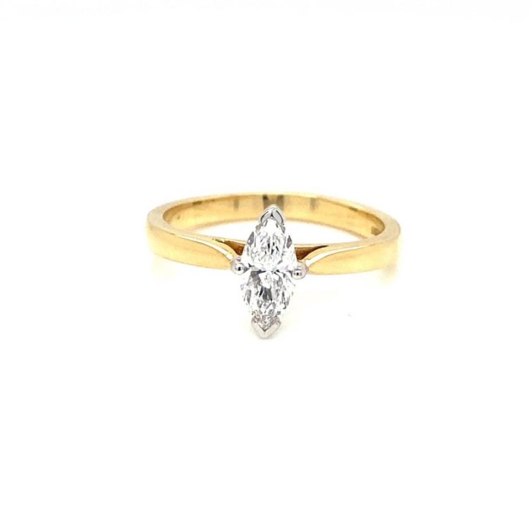 18ct Yellow Gold Single Stone Marquise Diamond Ring