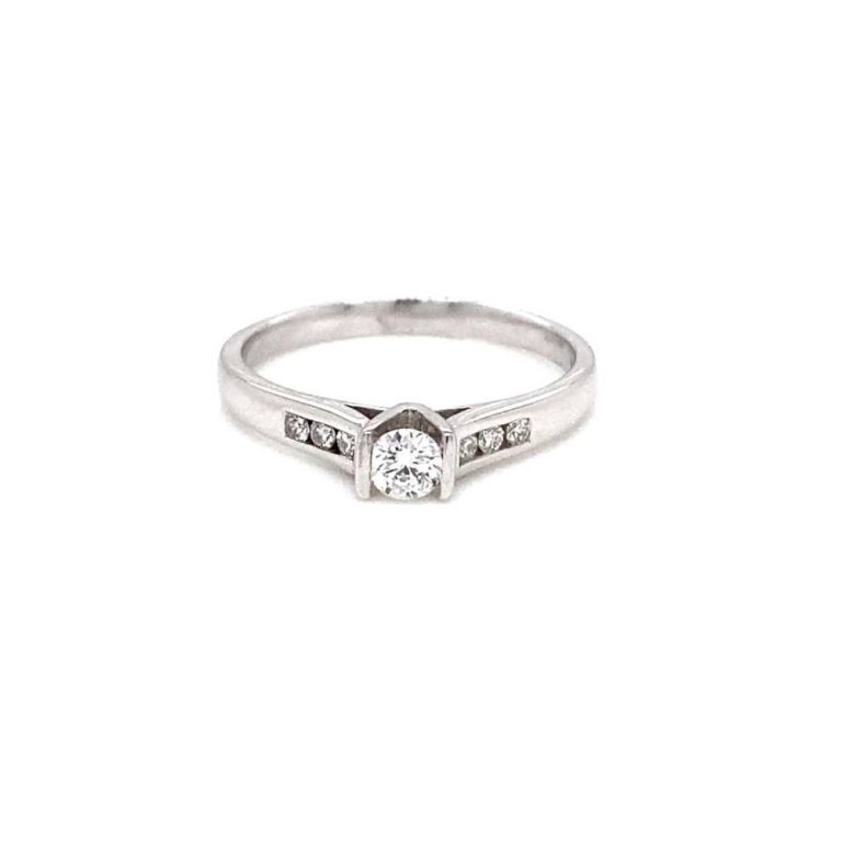 9ct White Gold Diamond Ring with Diamond Set Shoulders