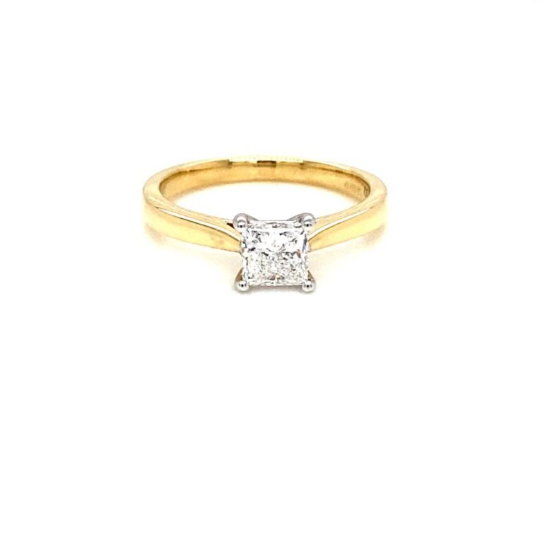 18ct Yellow Gold Solitaire Princess Cut Diamond Ring