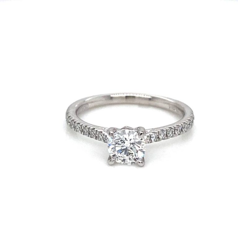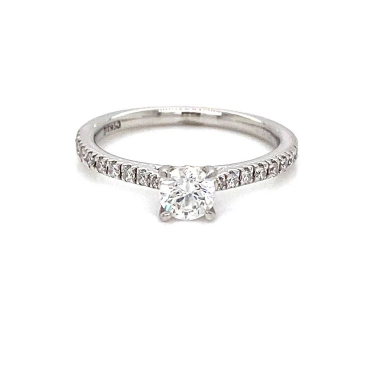 Platinum 0.50ct Single Stone Diamond Ring with Diamond Set Shoulders